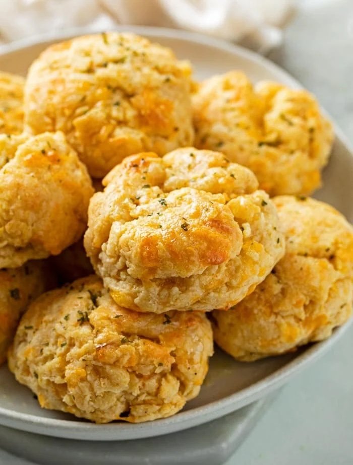 For the Biscuits 2 cups Biscuits mix ⅔ cup buttermilk 1 cup sharp cheddar cheese, shredded ¼ tsp garlic powder For the garlic butter topping ¼ cup butter, melted ½ tsp garlic powder ¼ tsp dried parsley flakes Pinch of Old Bay seasoning (optional) |